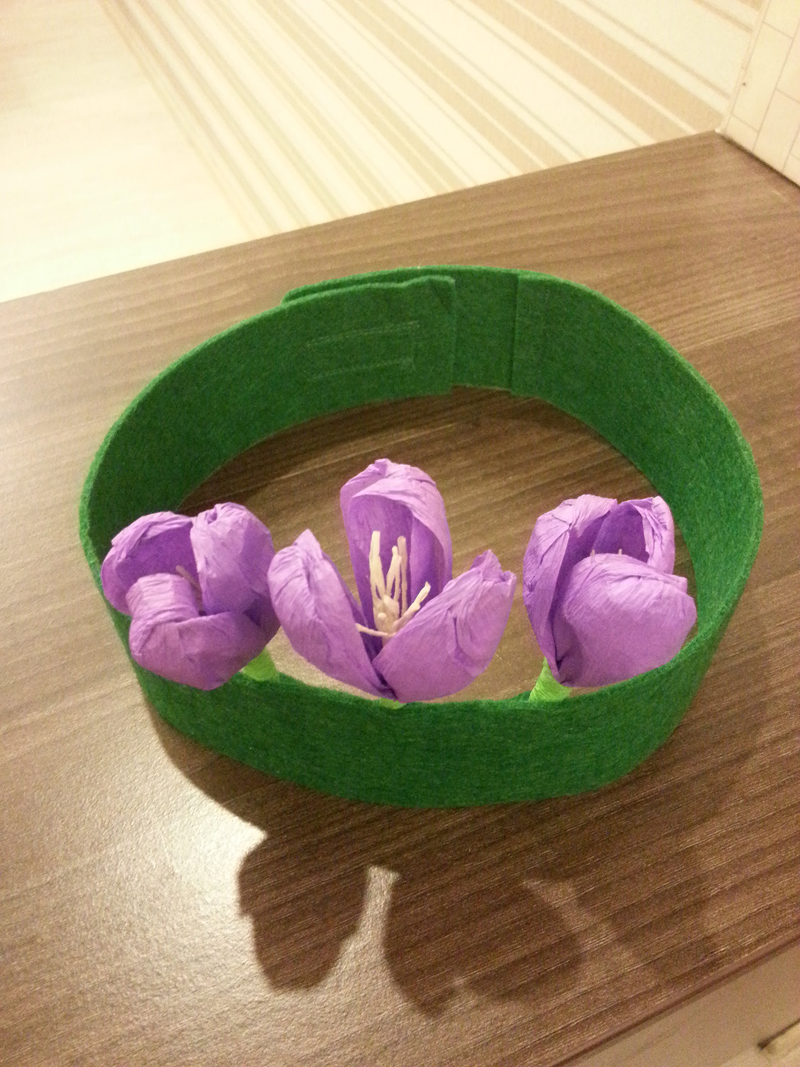 Ну а так, в порядке разностей, еще покажу несколько фоток. Делала на праздник весны для сынули вот такую корону, он был Крокусом. :0) Вот как же все таки сильны стериотипы ))))) - некоторые мамочки на празднике, шутя, говорили, что так и тянет узнать нет ли там внутри конфетки (хотя и так понятно, что нет ;0)) Но, наверное, каждой из них тоже хотелось маленького чуда ;0))))